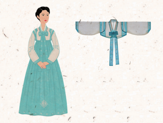 우리 고유의 한복. 시대가 흐르면서 한복의 형태도 조금씩 달라졌어요. 하지만 치마, 저고리, 바지라는 한복의 기본 구성은 오랫동안 변치 않고 지속되고 있는데요. 윗옷과 아래옷으로 나뉜 점이 일본의 기모노나 중국의 한푸 등 다른 국가의 전통 복식과 다른 특징이에요. 이 같은 한복의 기본 구조는 멀리 고구려시대의 고분벽화에서 찾아볼 수 있어요. 한복은 삼국시대, 고려시대, 조선시대를 거치면서 각 시대의 사회적 특성에 따라서 독특한 양식을 가지고 변화와 발전을 거듭했는데요.