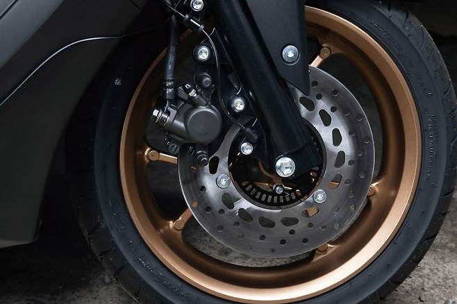 덕분에 제동력 손실이 적어 제동거리를 줄여주고 쓸데없이 ABS가 수시로 개입하는 일도 적다. 만약 ABS가 없던 스쿠터를 타던 라이더가 타게 된다면 ABS가 작동하는 일이 거의 없고 어색함 없이 탈 수 있을 것이다. 또한 신형 NMAX에는 ABS뿐만 아니라 트랙션 컨트롤도 적용된다. 하지만 주행하는 동안 트랙션 컨트롤이 작동 하는 일은 없었다. 125cc 스쿠터의 출력이 타이어의 그립을 넘어서는 것은 쉽지 않은 일이기 때문이다. 잘 작동하는지 궁금해 메인스탠드로 뒷바퀴를 띄우고 스로틀을 열어보니 확실히 리어가 스로틀에 개입하며 출력을 조절한다. 갑자기 눈이 내리거나 젖은 노면에서 타이어가 그립을 잃는 상황을 맞았을 때 라이더에게 한 번의 기회를 더 만들어 줄 것이다.