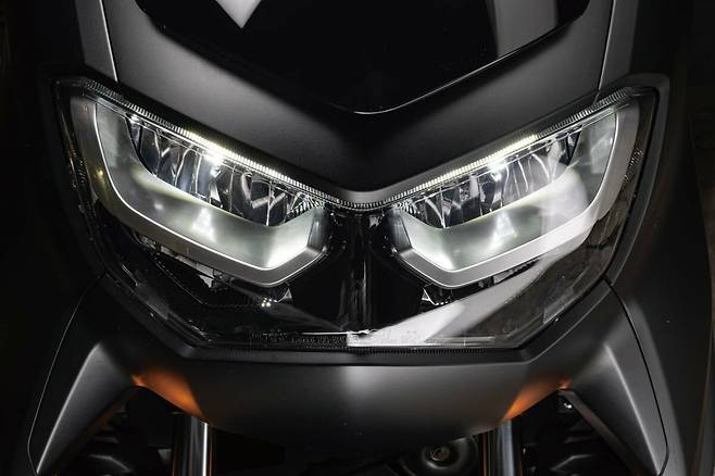 사이즈는 조금 작지만 티맥스 560의 느낌과도 비슷하다. 그래서 디자인의 완성도가 크게 달라 보인다. 그리고 헤드라이트는 사람의 눈과 같아서 작은 변화로도 바이크 전체의 인상을 바꿔놓는다. 더욱 선명해 눈매가 바이크를 더 똑똑하고 고급스럽게 보이게 만든다.