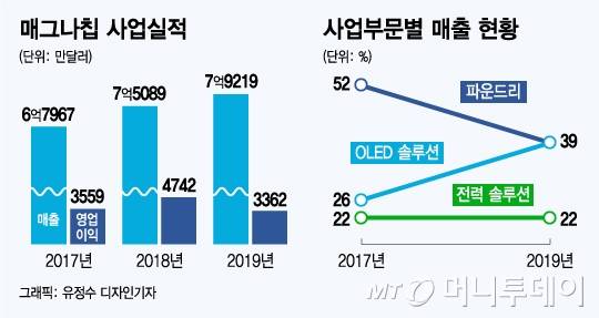 업계 최저 전력의 28나노(㎚·1나노미터=10억분의 1m) 제품을 포함해 다양한 OLED 구동칩을 삼성디스플레이 등에 공급한다. 지난해 초 미국 라스베이거스에서 열린 세계 최대 IT·가전 전시회에서 삼성전자와 LG전자가 앞장서 선보인 마이크로LED(발광다이오드) TV에도 매그나칩의 디스플레이 구동칩이 탑재됐다.