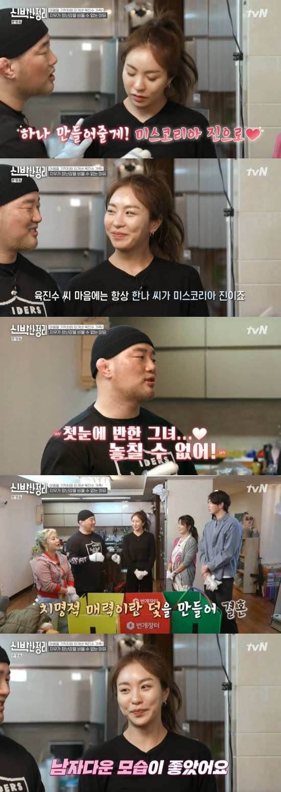 29일 방송된 tvN '신박한 정리'에서는 육진수가 아내와 러브스토리를 공개한 장면이 전파를 탔다.