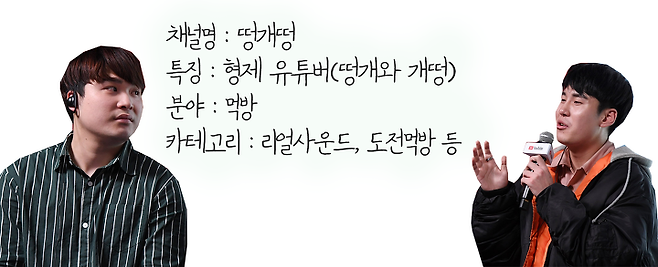 먹방 크리에이터 떵개떵, 시니, 소프 팀을 만났습니다. 유튜브가 주최한 ‘크리에이터와의 대화’ 행사장에서 만났습니다. 먹방 장르는 한국에서 시작해 이제 하나의 문화로 자리 잡았는데요. 그러다 보니 취향별로 채널의 특징도 다릅니다. 믿을 수 없을 만큼 많이 먹는다거나, 잡담 없이 깔끔한 소리로 먹거나 등 먹방의 포인트도 제각각이죠. 이날 만난 크리에이터들 역시 모두 자기 채널만의 색깔과 전략이 뚜렷했습니다. 그들과의 대화를 정리해봤습니다.