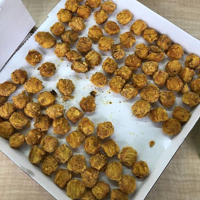 뿌링클 가루 양념 샤워를 마친 동글동글한 너겟들이 산처럼 쌓여있길래 내가 한번 세어봄(?)