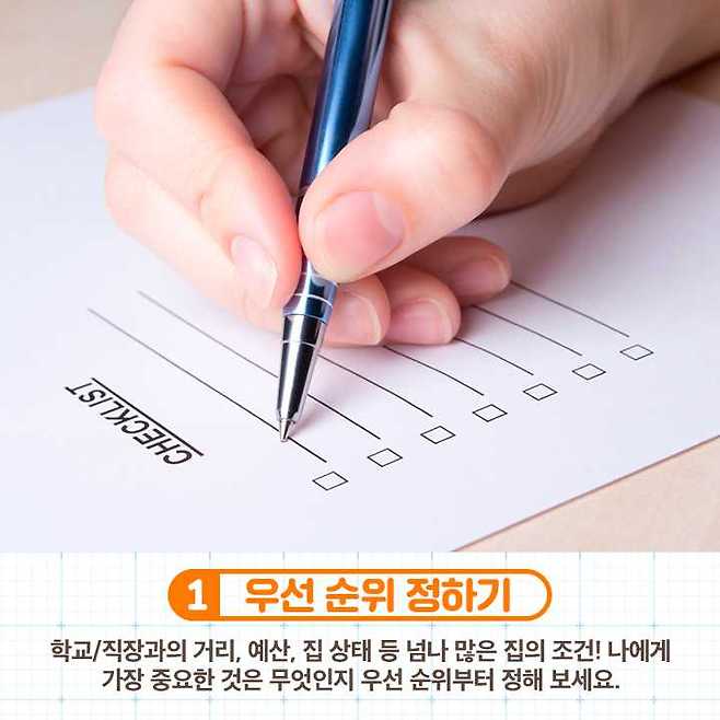 학교, 직장과의 거리, 예산, 집 상태 등