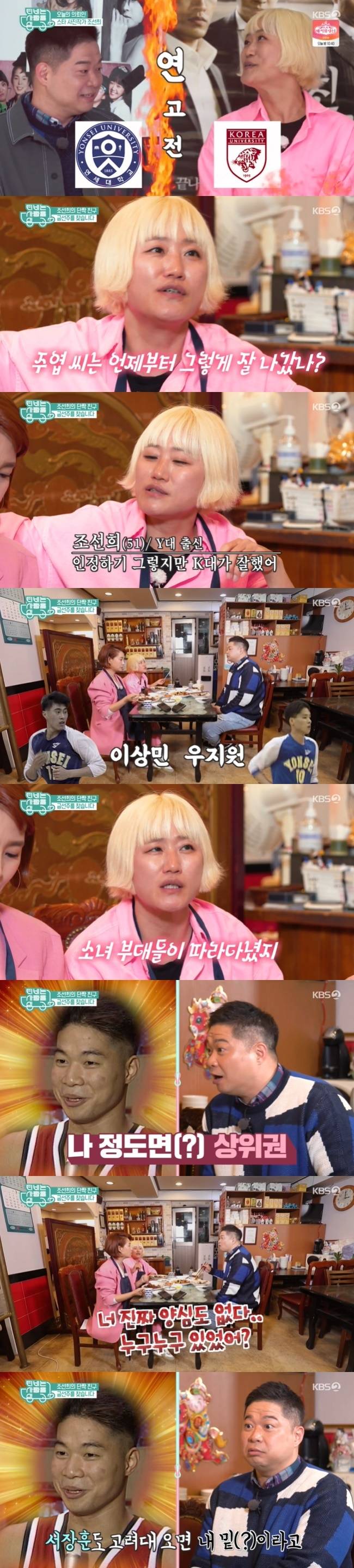 그때 조선희는 “근데 그때는 연세대가 잘하지 않았나. 이상민, 우지원 소녀부대가 따라다녔다”고 다시 견제했다.
