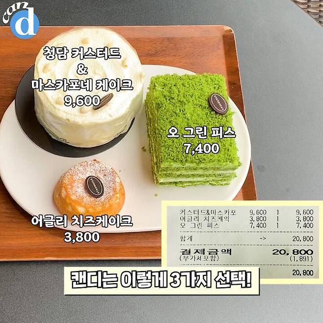 캔디는 디저트 3종만 골라서 뿌셔보기로!