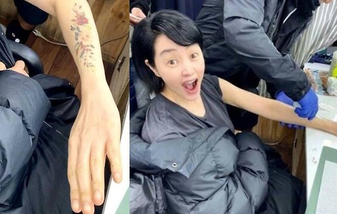 차기작 영화 <밀수>를 위해 타투를 새긴 것으로 보이는 김혜수