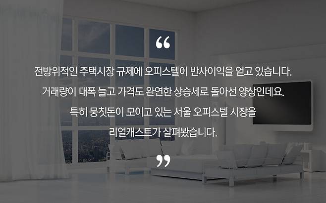 부동산인포 권일 팀장은 "오피스텔은 청약 요건이 덜하고 규제 강도도 낮아 아파트에 대한 과열의 불씨가 오피스텔로 옮겨 붙고 있는 양상이다”라며 “6ㆍ17 대책으로 규제 강도가 더욱 높아져 규제가 가시화되는 7월 이후 오피스텔이 제대로 풍선효과를 볼 것으로 판단된다"라고 말했습니다.