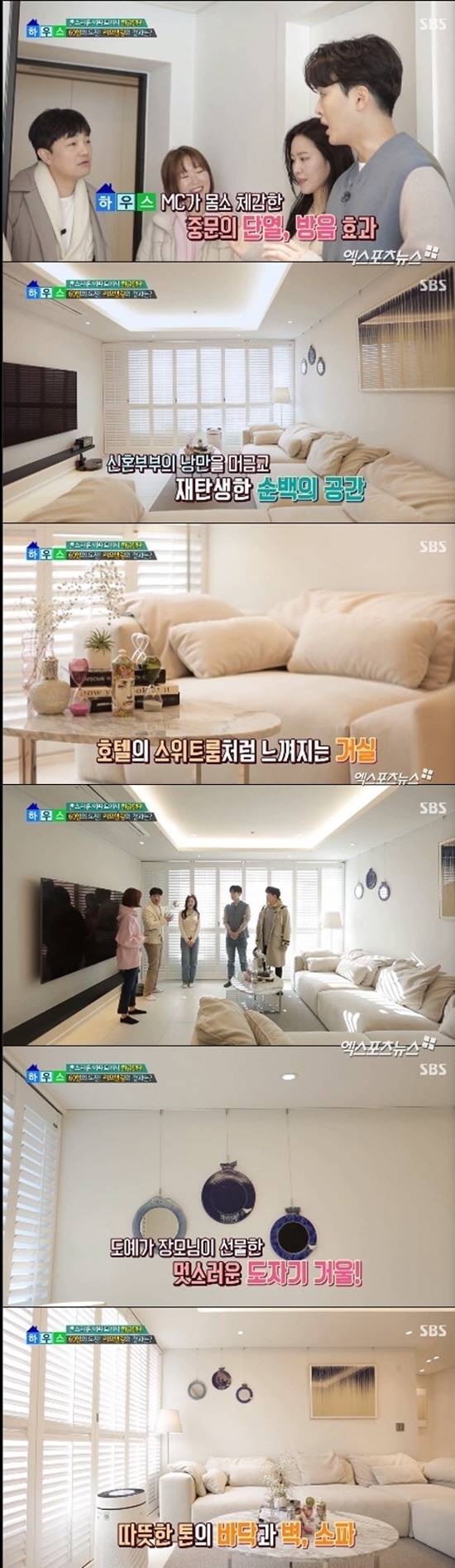 거실은 순백의 화사한 공간으로, 루버셔터로 세련미를 줬다. 침실은 대형 침대와 벽조명으로 로맨틱한 분위기를 자아냈다. 멋스러운 도자기 거울 소품도 눈에 띄었다. 조정식은 "장모님이 도예가다. 그릇 같은 걸 다 직접 구워줬다"라고 이야기했다.