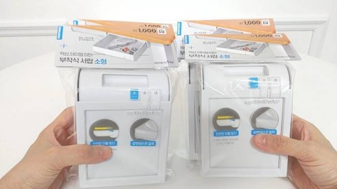 선반이나 책상의 아랫면에 붙일 수 있도록 서랍 윗면에 테이프가 붙어있기는 하지만 저희 집 젠다이는 통판이 아니라