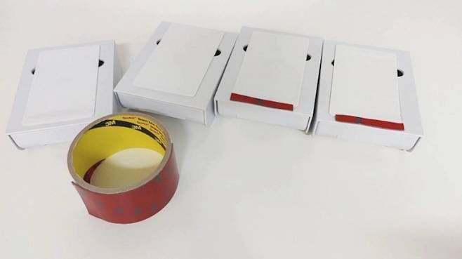 가운데가 푹 들어가 있어서 윗면과 뒷면에 따로 폼 테이프를 붙여주었어요.
