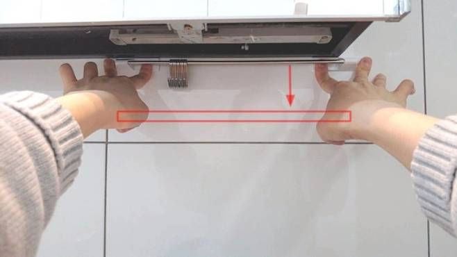 저는 집게 클립을 사용할 거라 수건장 바로 아래 설치했는데 고리 집게를 사용하실 분은 위쪽으로 여유가 있어야 하니 띄워서 붙여주세요.