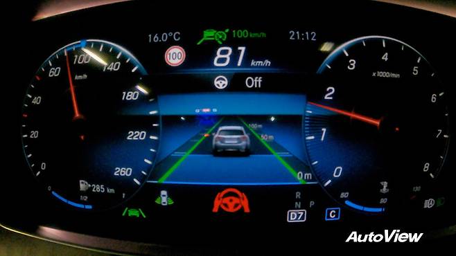 GLE 만큼은 아니지만 헤드-업 디스플레이 사이즈도 크다. 헤드-업 디스플레이도 3가지 영역으로 구분되니 운전자가 원하는 정보를 띄워 사용하기 편하다.