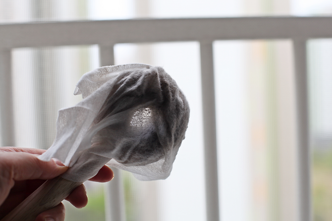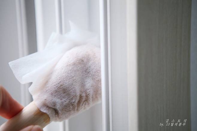 창틀을 청소할 때는 홈 사이사이의 촘촘망도 한번 스윽 닦아 내리면서 먼지를 제거해주세요. 안 그러면 나중에 먼지가 쌓여 흩날린답니다.