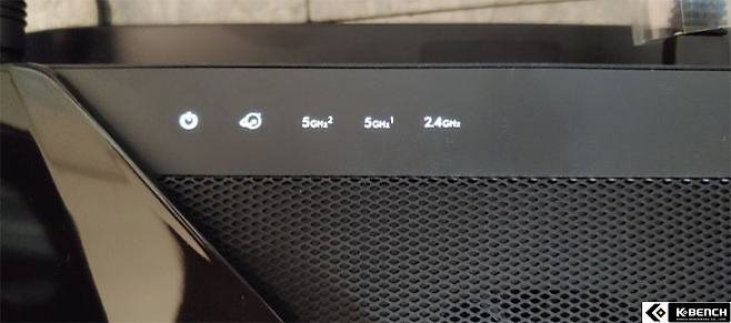 LED의 경우 사진과 같이 전원, 인터넷 연결, 5Ghz 2, 5Ghz 1, 2.4GHz 등을 확인할 수 있으며, 별도로 LAN 포트와 USB를 연결하면 연결된 우측에 위치한 공간에서 USB와 LAN를 LED가 점등 되어 확인할 수 있다.