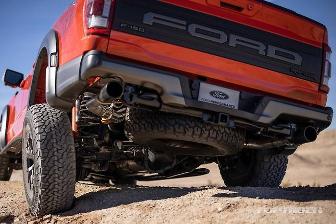 신형 F-150 랩터에는 머플러 바이 패스 밸브가 있는 스포츠 배기 시스템이 추가됐다. 신형 F-150 랩터의 폭스(Fox) 어댑티브 댐퍼에는 라이브 밸브 기술이 적용됐다. 주행 스타일과 지형에 맞게 조정돼 댐핑을 1초에 최대 500회 변경한다. 사륜구동이 기본 사양이다.