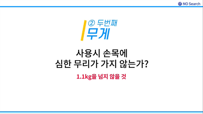 1.1kg이 넘거나 구조상 손목에 무리가 가는 제품은 제외 하였습니다.