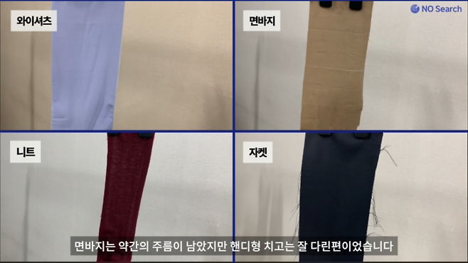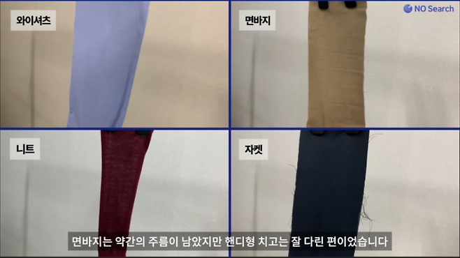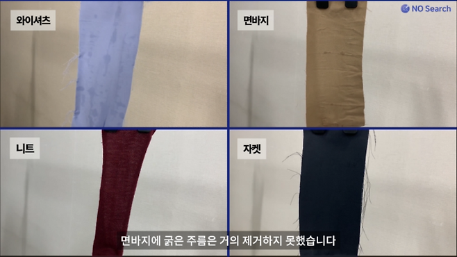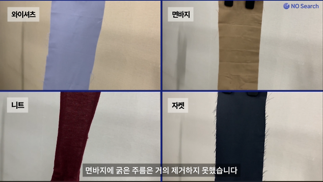 면바지의 굵은주름은 거의 제거하지 못했습니다.