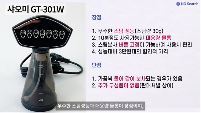 다만, 간혹 스팀과 동시에 물이 나오기도 하며, 판매처별로 다르긴 하지만 추가구성품이 빈약한 것은 단점입니다.