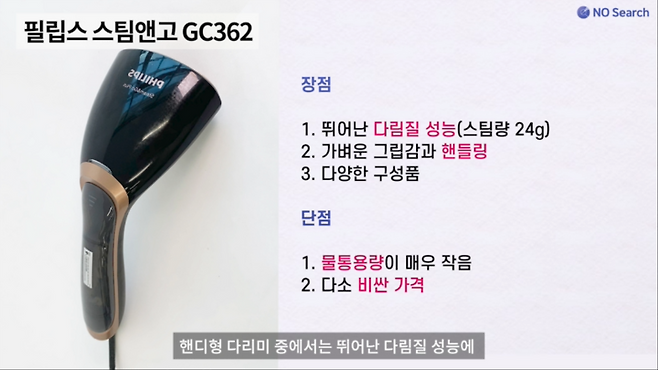 핸디형 다리미 중에서는 뛰어난 다림질 성능에 가벼운그립감으로 사용시 매우 편리하며 꼭 필요한 구성품이 포함된 것이 장점입니다.