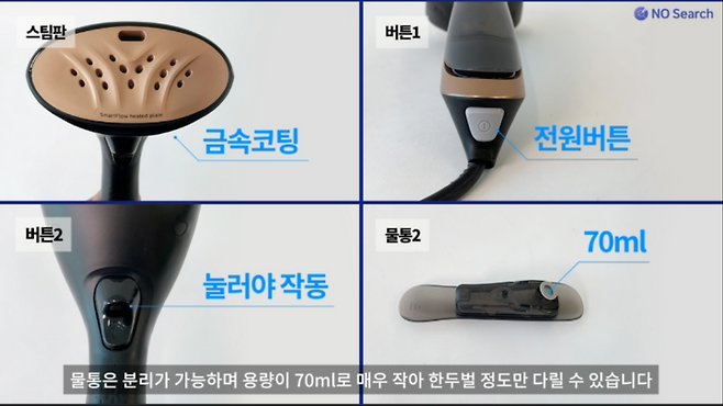 물통은 분리가 가능하며 용량이 70ml로 매우 작아 한두벌 정도만 다릴 수 있습니다.