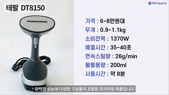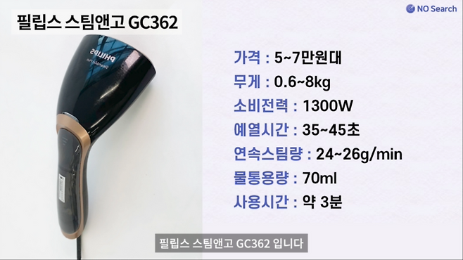 강력한 다림질 성능을 자랑하는 제품은 아니지만, 가벼운 무게, 빠른 예열시간, 넉넉한 물통용량이 장점인 제품입니다.