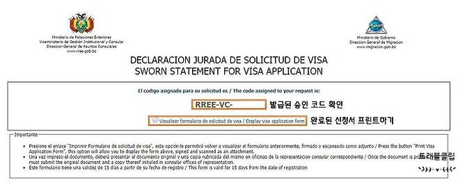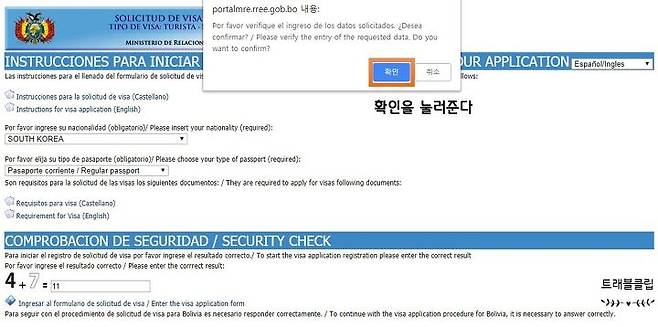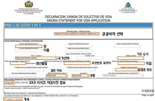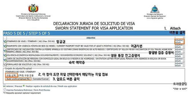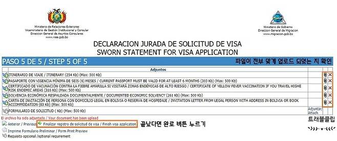 위의 모든 서류가 준비되셨다면 볼리비아 대사관 사이트에 접속하여 비자 발급 온라인 신청을 하면 됩니다.