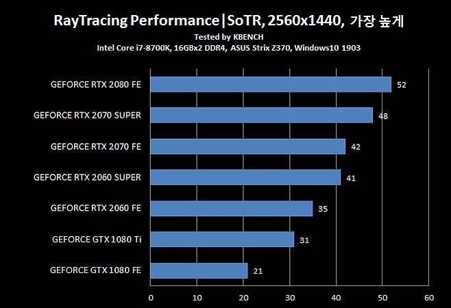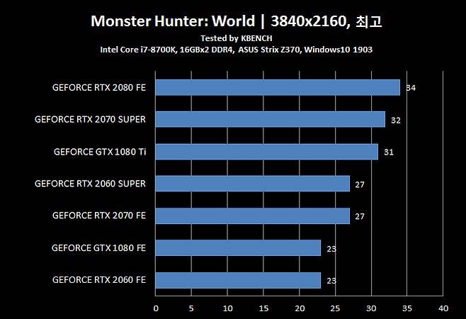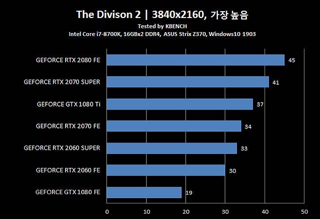 참고로, 테스트 시스템은 인텔 코어 i7-8700K와 ASUS ROG Strix Z370 메인보드, 16GB DDR4 2133 x2, 윈도우10 1903이 설치된 PC 였으며 드라이버는 엔비디아에서 제공한 게임 레디 드라이버 v431.16을 사용했다.