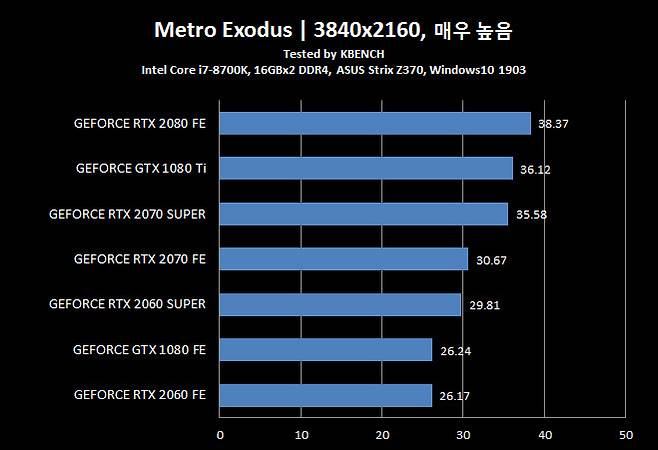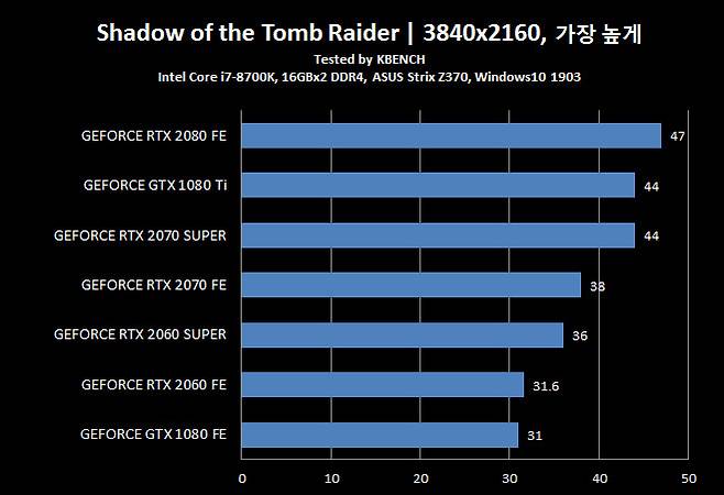 참고로, 테스트 시스템은 인텔 코어 i7-8700K와 ASUS ROG Strix Z370 메인보드, 16GB DDR4 2133 x2, 윈도우10 1903이 설치된 PC 였으며 드라이버는 엔비디아에서 제공한 게임 레디 드라이버 v431.16을 사용했다.