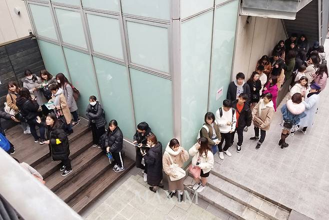 이날 하루 종일 비가 살짝살짝 왔는데 다들 우산까지 들고 장사진을 친 열성적인 모습.