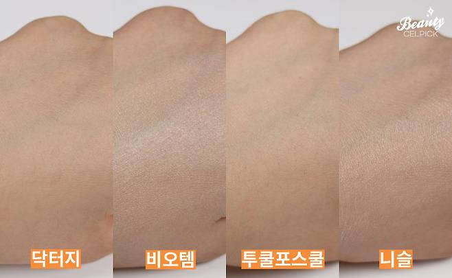 보송한 메이크업을 원한다면 닥터지와 투쿨포스쿨 제품, 빛나는 광채 피부를 표현하고 싶다면 비오템을 추천합니다. 니슬 제품은 언제나 데일리로 써도 좋지만, 4종 중 가장 순한 성분을 사용했기 때문에 피부가 민감하거나 열이 많이 오를 때 사용하면 좋겠네요!