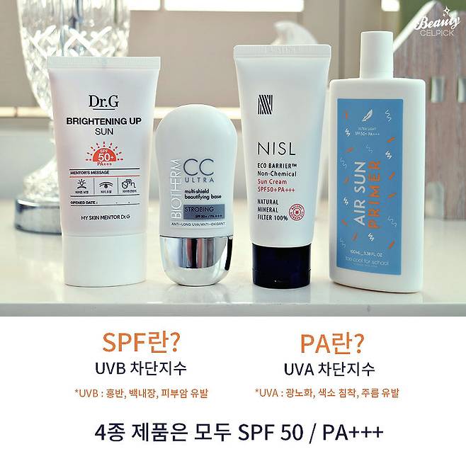 뷰디터가 PICK한 제품은 모두 SPF 50 / PA+++ 입니다. 베이스와 선크림을 따로 사용하는 것 보다 이렇게 자외선 차단 지수가 높으면서도, 발림성이 좋고, 메이크업과도 찰떡 궁합인 아이템을 선택하는 게 좋겠죠?