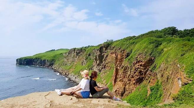 해변가에서 사진찍고 놀다가 슬렁슬렁 섬을 오르기 시작합니다.