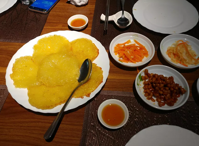 냉면만으로는 아쉬워서 감자전도 시켰죠.