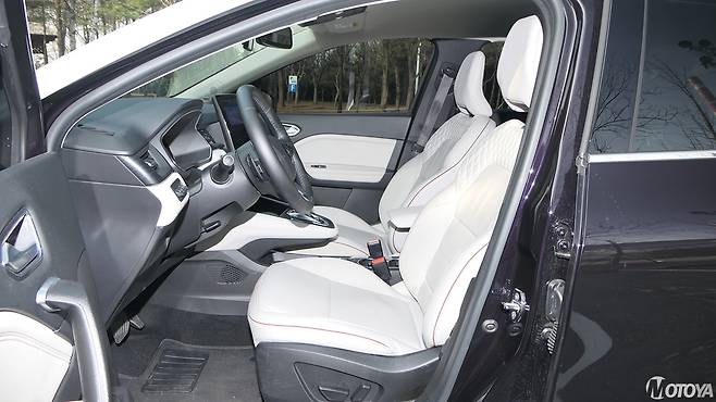 운전석은 세미버킷형에 가깝게 디자인 되어 있으며, 신체를 비교적 타탄하게 지지해 주는 착좌감을 지니고 있다. 소형 SUV의 좌석으로서 전반적으로 좋은 만듦새를 가지고 있으며, 과거의 QM3처럼 다이얼식이 아닌, 전동조절 기능까지 제공한다. 조수석은 수동 레버로 조정한다. 단, 르노 계열 자동차들에서 공통적으로 나타나는, 높다란 시트 포지션이 조금 마음에 걸린다. 이는 여성 운전자들은 선호하게 될 만한 부분이기는 하지만, 남성운전자들에게는 호불호가 갈리는 요소다. 운전석과 조수석은 양쪽 모두 2단계의 열선 기능을 제공한다.