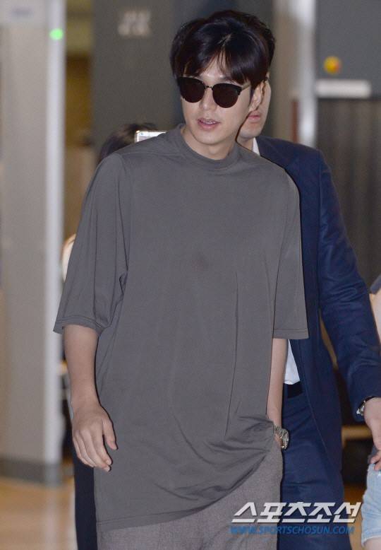 이민호는 은은한 그레이 컬러의 티셔츠에 슬랙스 팬츠를 톤온톤 매치한 공항패션을 완성했다. 군더더기 없는 깔끔한 디자인의 아이템들이지만, 바디라인을 따라 자연스럽게 흐르는 소재감이 캐주얼하기 보단 우아한 무드를 전하는 스타일이다. 단조로울 수 있는 느낌은 선글라스와 메탈릭한 손목시계로 보완했다.