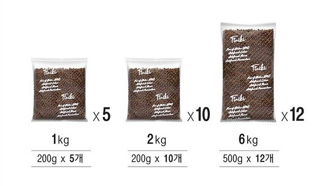 사료는 한 번 뜯어 산소를 만나면 빠르게 맛이 변하는데요. 1kg 사료는 200g 봉지가 5개, 2kg은 10개, 6kg은 500g 봉지가 12개가 들어있는 등 최대한 상하지 않도록 소분 포장이 되어 있습니다.