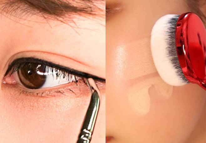 정교한 아이라이너는 메이크업 초보자에게 있어 특히나 어려운 과제! 흔들림 없이 날렵하고 깔끔한 아이라인을 완성 시켜주는 ‘꺾인 브러시’가 인기. 브러시가 점막과 눈꼬리에 보다 쉽게 밀착될 수 있도록 45도 정도 꺾인 각도로 만들어져 눈꼬리부터 점막, 쌍꺼풀 라인까지 한 큐에 그릴 수 있다. 날렵하게 끝이 모아진 브러시 형태로 섀도로 라인을 그릴 때도 편리하다는 평이 대부분.