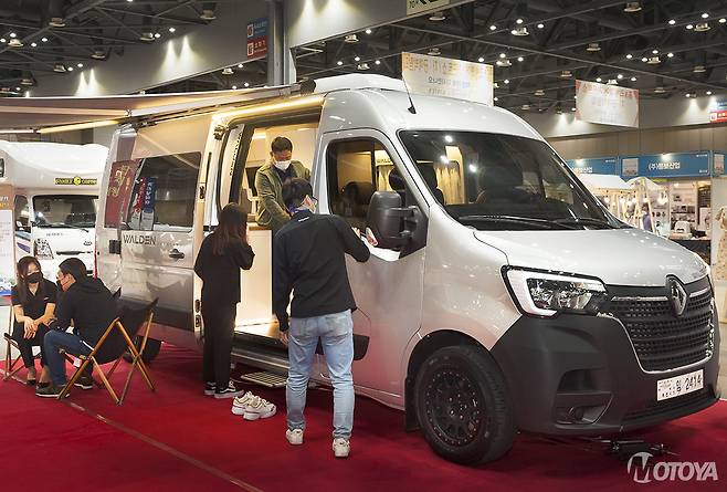 르노 마스터 15인승 버스 기반 캠핑카를 9일까지 일산 킨텍스에서 진행되는 스포츠∙레저산업 박람회에 출품한 월든모빌 권민재 대표는 "가족 단위로 더욱 넉넉한 공간의 캠핑카를 찾는 고객들이 늘어나면서 마스터 15인승 버스를 기반으로 제작한 캠핑카를 선보이게 되었다"고 말하고, "마스터 15인승 버스의 넓은 실내 공간을 활용해 1열에 회전시트를 적용해 2열과 마주할 수 있는 4인 라운지 공간을 마련했고 취침 공간도 밴 기반 모델과 비교해 더욱 여유롭게 구성할 수 있었다"고 설명했다. 또다른 특장 협력업체인 나인인디에어의 강봉구 대표는 "심플하면서도 직관적인 기능의 캠핑카를 선호하는 장년층 캠퍼들의 요청에서 착안해 마스터 15인승 버스 기반 캠핑카를 제작했는데, 실제로 50대 이상 고객들에게 마스터 15인승 버스 기반 캠핑카가 매우 높은 호응을 얻고 있다"고 말했다.