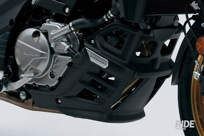 한편, 노멀 버전과 달리 브이스트롬 650XT는 너클 가드와 엔진 언더 카울을 기본 적용했다.