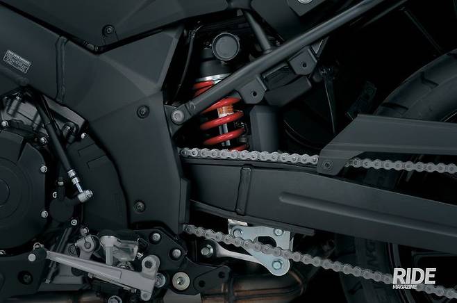 섀시는 기존과 동일하다. 기존 모델의 가볍고 콤팩트한 알루미늄 트윈 스파 프레임과 스윙암은 경쟁 모델에 적용되고 있는 스틸 프레임과 비교해 강도와 밸런스 부분에서 높은 성능을 발휘한다. 이는 온로드 스포츠 주행 시 차이가 크게 느껴질 수 있는 부분이다.