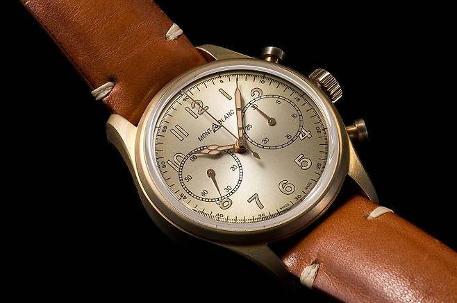 몽블랑 1858 오토매틱 크로노그래프는 직경 42mm의 스테인리스 스틸 혹은 브론즈 케이스 중 선택할 수 있습니다. 기존의 1858 매뉴얼 스몰 세컨드와 1858 오토매틱, 1858 듀얼 타임이 44mm 사이즈로 선보였던 것을 상기할 때, 신제품인 1858 크로노그래프 오토매틱과 1858 지오스피어는 이보다 작은 42mm 사이즈로 전개하는 점에 주목할 필요가 있습니다. 이는 사이즈의 다변화를 통해 고객들의 니즈를 보다 다양하게 반영하겠다는 의지의 표현이자 반대로 생각하면 좀 더 작은 사이즈를 희망하는 고객들의 요구가 받아들여진 것으로도 볼 수 있습니다.