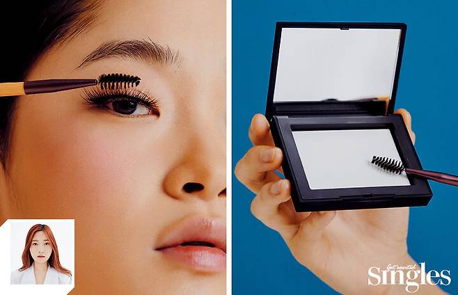 2 번짐이나 처짐을 방지하기 위해 브로우 셰이퍼를 납작한 브러시에 발라 코팅하듯 덧바르면 하루 종일 번짐 없는 속눈썹이 완성된다.