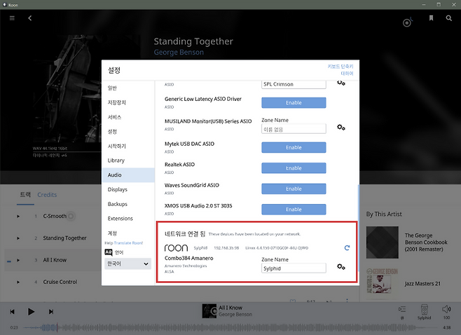 없는 것이 많다 해도 될 것은 다 된다. 지원하는 기능은 인터넷 라디오, UPnP/DLNA, Roon Bridge, SqueezeBox Player이며 AirPlay와 HQPlayer는 소프트웨어를 추가로 설치하면 가능하다. 필자는 아이패드의 mconnectHD 앱과 안드로이드 폰에서 Hi-Fi Cast 그리고 Bubble UPnP 앱을 이용하였다. mconnectHD, Bubble UPnP 앱을 통해 Tidal, Qobuz 등과 인터넷 라디오 서비스를 이용할 수 있고 Bugs! Music 앱을 통해 스트리밍할 수 있으며 Roon과 Squeezebox 앱을 통해서도 스트리밍 오디오를 재생할 수 있다. 다시 말해 UPnP/DLNA, Roon, Squeezebox 프로토콜 표준을 지원하는 앱이면 실피드를 인식하며 이런 앱은 수도 없이 많다.