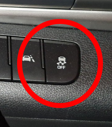 이 버튼은 VDC OFF 버튼입니다.이 버튼은 운전자가 평소에 건드려서는 안 됩니다.이 버튼을 누르면 자동차가자세를 제어하는 VDC(Vehicle Dynamic Control)기능이 꺼지기 때문입니다.