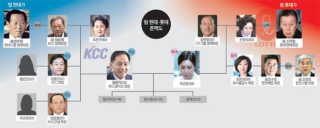 정몽익(59) KCC글라스 회장은 1990년 최은정(58)씨와 결혼했는데 이는 당시 현대가와 롯데가의 첫 결합으로 세간의 주목을 받았다. 정 회장의 부친은 이번에 별세한 정상영 KCC그룹 명예회장이다. 정 명예회장은 고 정주영 현대그룹 명예회장의 막냇동생으로 맏형의 각별한 애정을 받았다. 생전에 말투와 외모 등이 정주영 명예회장을 쏙 빼닮아서 ‘리틀 정주영’으로 불렸다.