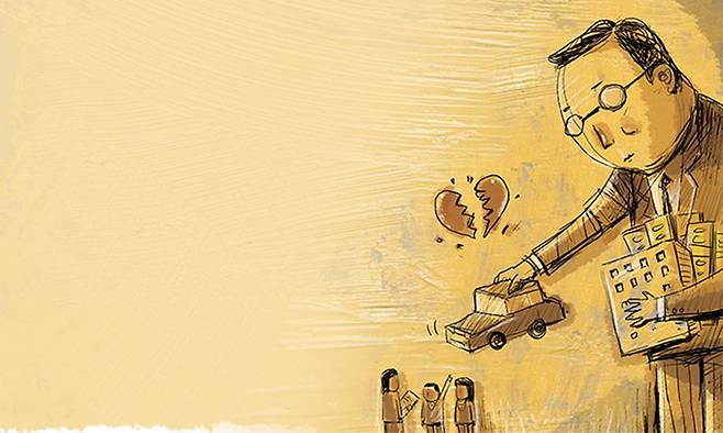 정몽익(59) KCC글라스 회장은 아내 최은정씨가 “이혼을 원치 않는다”며 맞서자, 최씨가 자녀와 살고 있는 자택을 처분하고 타고 다니던 정 회장 명의 차량을 회수하려 하는 등 다양한 방법으로 압박을 가한 것으로 확인됐다. 법조계는 정 회장 측의 이 같은 행위가 ‘축출이혼(무책배우자를 고의로 쫓아내는 이혼)의 교과서적인 사례’라고 평가했다. 현행 가족법은 최씨처럼 가정 파탄의 책임이 없고 경제력이 약한 배우자를 보호할 수 있는 데 한계가 있다는 지적이다.