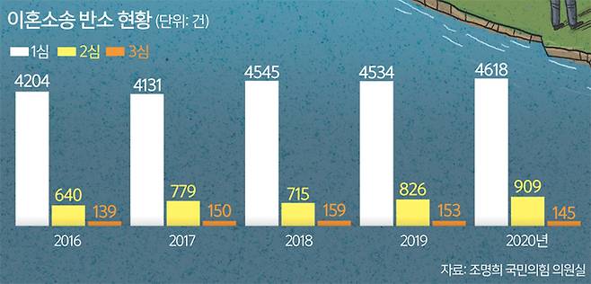 우리 사회에서 무책 배우자가 유책 배우자의 일방적인 이혼 요구를 마주한 뒤 밟게 되는 ‘악순환의 굴레’다. 약자를 보호해야 할 사회적 안전판, 즉 가족법에 이 부분이 ‘입법의 공백’ 상태로 남아 있기 때문이다. 혼인 파탄의 책임이 있는 배우자의 이혼 청구를 수용하지 않는 ‘유책주의’ 관점에서는 이혼 거부라는 맞대응이 가능하지만 시간을 끌면 끌수록 재산권 확보 등에서 불리한 형국이 펼쳐진다. 제도적 보호장치 없이 법원의 판결도 파탄주의(사실상 혼인이 파탄났다고 인정되면 이혼을 허락하는 관점)를 받아들이는 방향으로 흘러가고 있다. 무책배우자는 엎친 데 덮친 격이다. 전문가들은 혼인 파탄의 책임이 없는 배우자를 보호하는 방향으로 가족법이 개정돼야 한다고 지적했다.