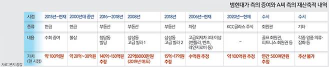 21일 재계와 법조계에 따르면 A씨와 그 혼외자가 보유 중인 재산은 수백억원대에 이른다. 우선 순수한 현금만 따지면 정 회장이 100억원 이상, 정 회장의 모친이 약 20억∼30억원의 현금을 증여한 것으로 파악됐다.