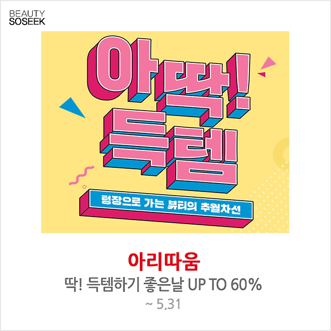아리따움 딱! 득템하기 좋은날 UP TO 60%